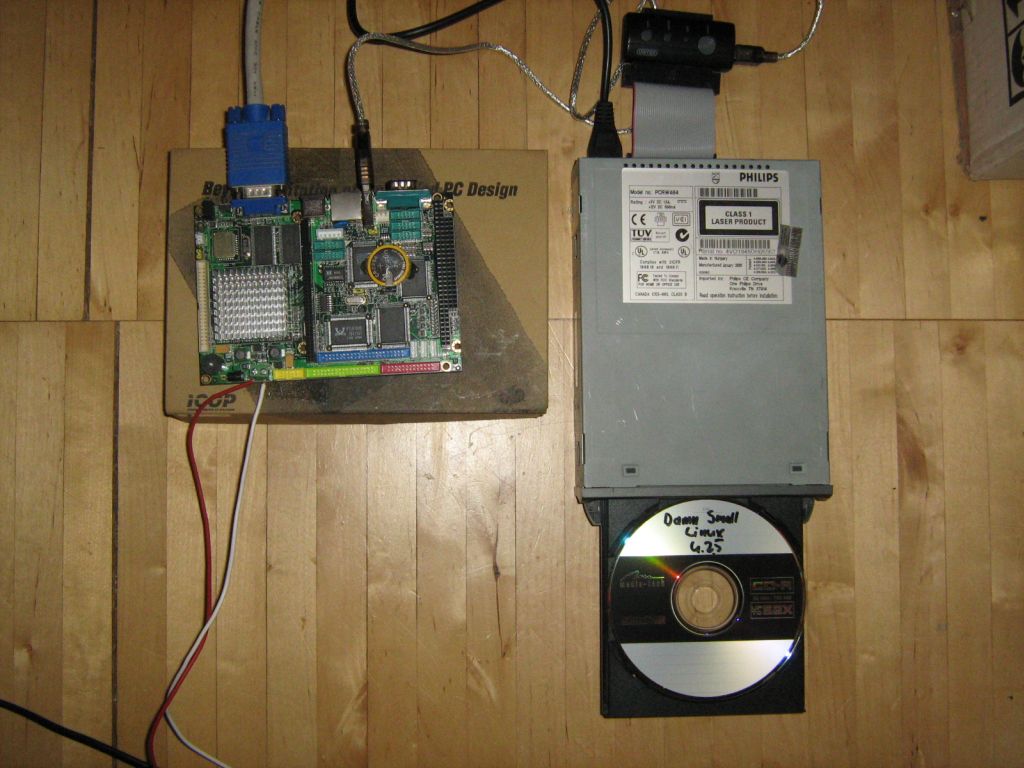 W praktyce wygląda to tak, że Linux oferowany nam przez producenta to jakiś staroć z jądrem z serii 2.4, czyli o porządnej obsłudze USB (co jest wymagane w moim projekcie) można zapomnieć. Nie udało mi się uruchomić żadnej z bardziej znanych dystrybucji, dotarłem za to do Puppy Linuxa zbudowanego specjalnie do działania na tym sprzęcie (eBoxPup). Okazało się, że z jej instalacją (przez adapter USB/IDE CD) również jest więcej problemów niż to warte, więc zarzuciłem ten pomysł. Żeby zainstalować jakąś mainstreamową dystrybucję, musiałbym spatchować kernel i sterowniki, a patche są dostępne tylko dla jądra 2.4, a ja nie mam zamiaru być ochotnikiem który je przerobi.