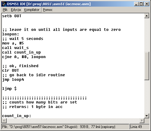- DSM-51 IDE - Windows, 76 kb - proste windowsowe IDE do pakietu DSM-51, odziedziczone po Tzoku (wielkie dzięki za kody źródłowe). Dodałem parę funkcji, poprawiłem drobne błędy. Wymaga bibliotek visual basica (tak, to mój pierwszy program w vb - kiedyś się trzeba było przełamać :) (screenshot)