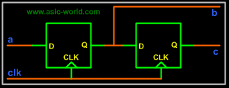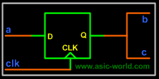 - = - przypisanie blokujące, wykonywanie kolejnych instrukcji jest wstrzymywane do zakończenia tej, always @(posedge clk) b=a; c=b; wyglada tak: